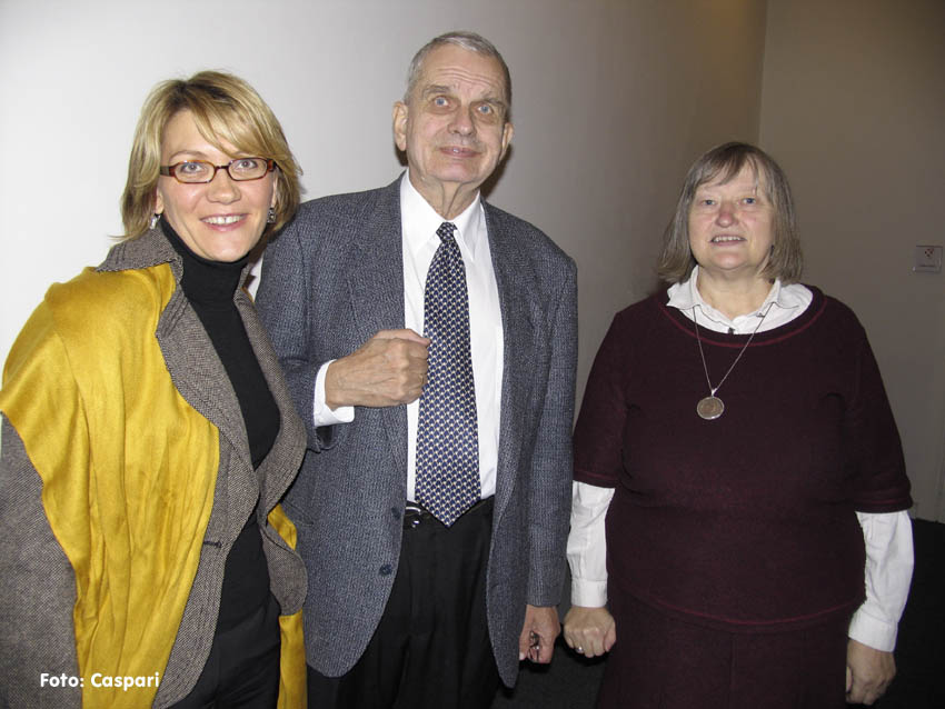 Tomas Venclova mit den beiden INFOBALT-Mitarbeiterinnen Inga Ziukiene (links) und Lauma Zvidriņa