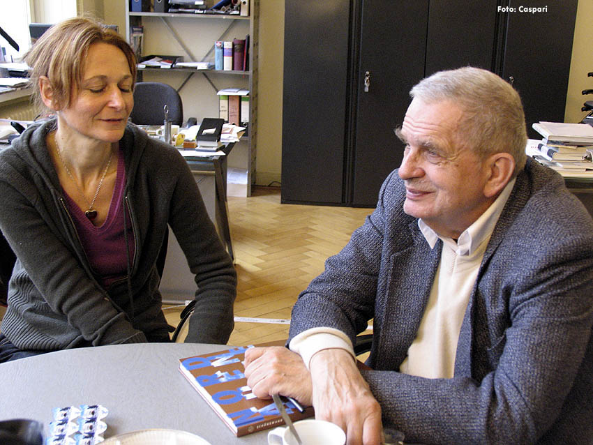 Tomas Venclova beim Treffen mit Angelika Sinn vom Literaturkontor Bremen