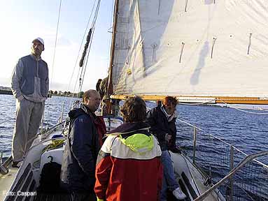 In Kiel lud die Umweltinitiative "Hohe Tied" die Gäste aus Lettland zu einem Ausflug per Segelyacht auf die Kieler Förde ein, um so mit lebendigen Eindrücken über Umweltschutz an der Ostseeküste und im Schiffsverkehr diskutieren zu können.