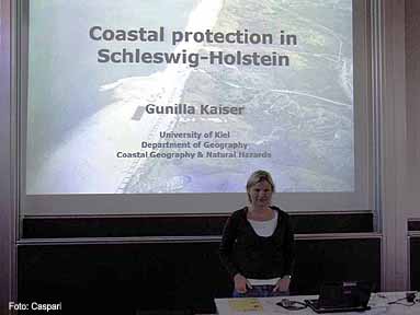 Am Geografischen Institut der Christian-Albrecht Universität Kiel vermittelte Dr. Gunilla Kaiser den Gästen aus Lettland einen Überblick zur Entwicklung des Küstenschutzes an der Nord- und Ostseeküste Schleswig-Holsteins.