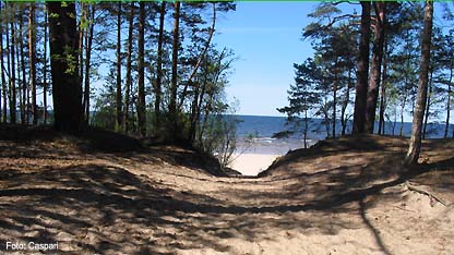 | Zwar steht der unmittelbare Küstenbereich auch in Lettland gesetzlich unter Schutz, das hindert aber vorerst leider nicht, dass oft mit Autos und Motorrädern direkt über den Strand gerast wird, Müll von zügellosen Picknicks und "Partys" die Landschaft belastet, und sogar manche versuchen, in unmittelbarer Strandnähe (illegal) Bauten zu errichten. |