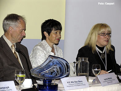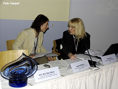 mit Ingrīda Mikiško, Vorsitzende „Latvijas Pilsoniksas Alianse“ (lettische bürgerschaftliche Allianz), S.E. Valdis Krastiņš, außerordentlicher Botschafter und Bevollmächtigter der Republik Lettland beim Ostseerat, S.E. Nils Olav Stava, außerordentlicher Botschafter und ständiger Vertreter des Königreichs Norwegen in Lettland, Imants Gross, Vertretung des Nordischen Rats in Lettland, Dr. Elmar Römpcyk, Leiter des Büros Riga der Friedrich-Ebert-Stiftung, Darja Akhutina, Vereiniung „Norden“ St.Petersburg, Robert Ķilis, Stockholm School of Economics in Riga.
