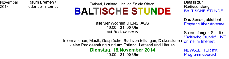 & Programmhinweise zur Radiosendung BALTISCHE STUNDE