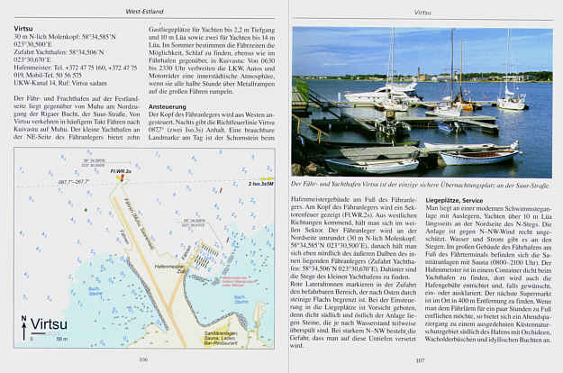 Die einzelnen Abschnitte des Buches beinhalten nicht nur Karten zur Orientierung, sondern fast immer noch ein Fotos aus der Hafenumgebung zur besseren Orientierung vor Ort. Die Karten selbst sind detailreich und übersichtlich, damit sehr gut zu gebrauchen und anderswo sicher in dieser Zusammenstellung nur schwer zu beschaffen. OOO Der Detailreichtum der Karten kann mit einem Sonderlob bedacht werden! O |
