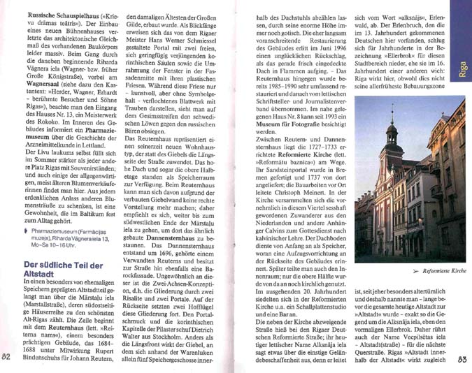Ein kleiner Nachteil bei der Orientierung außerhalb von Riga ist sicherlich, dass in diesem Buch die Ortsbeschreibungen alphabetisch angeordnet sind; noch dazu fehlen bei den einzelnen Abschnitten kleine Übersichtskarten. So springt die Beschreibung hier ständig von einem Landesteil in einen anderen.