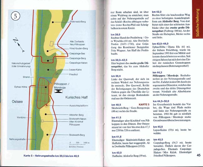 Die zahlreichen Übersichtskarten tragen sehr zur schnellen Übersicht über die einzelnen Teile der Nehrung bei - viele Details an denen man sich vor Ort orientieren kann, sind mit angegeben. Für ein Buch über einen räumlich so relativ kleinen Bereich hervorragend ausgestattet! OOO |
